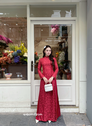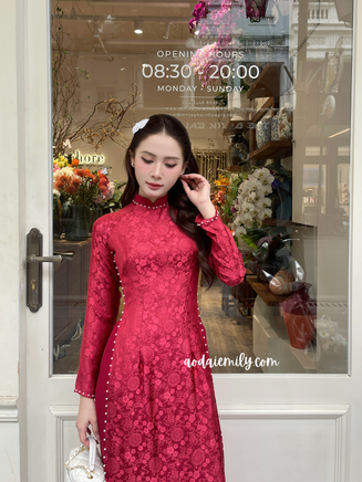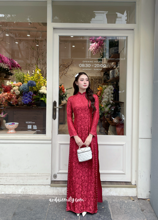 AILANY Double layers Burgundy Gam with pearls| Pre made ao dai Vietnam| Women long dress| No pants| Uniform ao dai| S-6XL