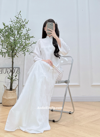 AMBER Loosing White modern ao dai | Flowers shinny patterns| Double layers áo dài cách tân| Pre made Ao dai |No pants| S-6XL