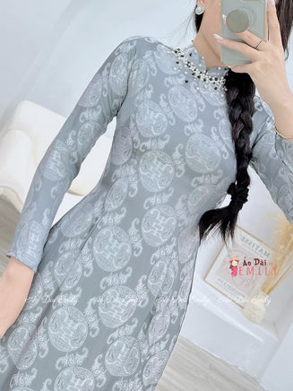 ARABELLA Ao dài gấm Thọ with designed crystals