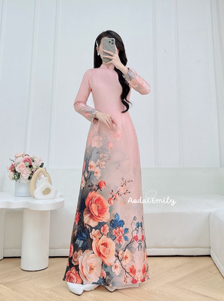 AZARI Printed flowers pattern Pre made ao dai for women| Vietnamese long dress| No pants|S-3XL
