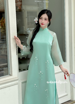 CECELIA Loosing modern ao dai set with beading flowers| áo dài cách tân | Ao dai Viet Nam| | Pre made Ao dai | With pants| S-6XL