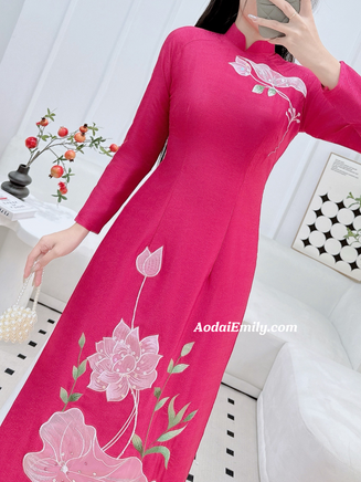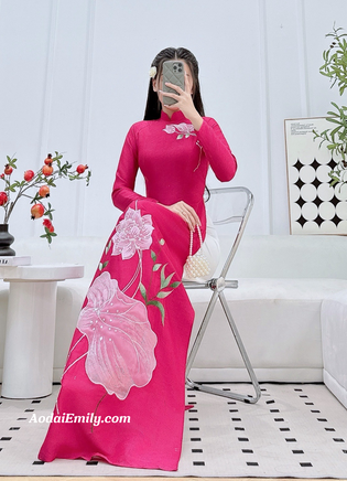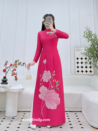 CHARLI Hand beading collar with embroidery flowers with crystals| Pre made long dress| Ao dài Việt| No pants| S-3XL