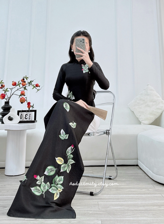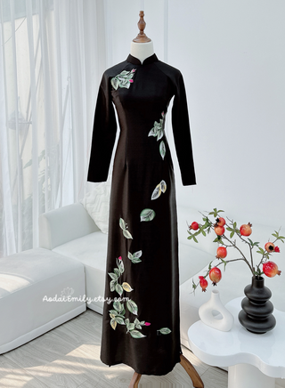 HATTIE Aó dài lụa with embroidery Flowers | áo dài lụa thêu hoa| Pre made Vietnamese long dress| traditional dress | No pants