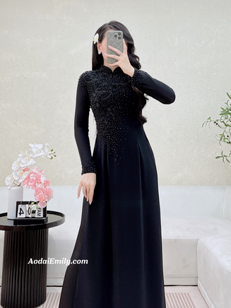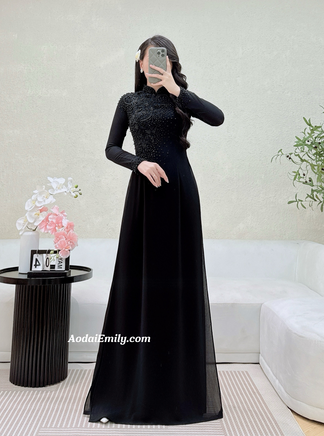 JUNE Ao dai with designed crystals| Pink Double layers chiffon| Ao dai for special events| No pants| S-4XL