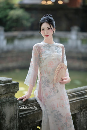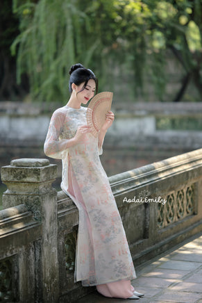 HAZEL Cream/ Pink double layers embroidery modern ao dai set