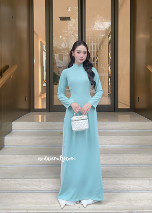 ZELDA Plain Sage green ao dai with pearls| áo dài| Pre made ao ai for bridesmaids| Plain| Wedding day checklist| No pants|S-8XL