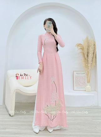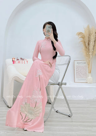 KENDALL Aó dài with embroidery Lotus & Crystals