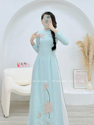 CHAYA Aó dài with embroidery Lotus & Crystals | Pre made Vietnamese long dress| traditional dress | No pants| S-5XL