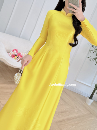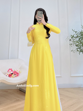SUNFLOWER Yellow ao dai with simple crystals rhinestones| Round collar| áo dài Vietnam| Uniform ao dai| No pants| 4D silk|S-2XL