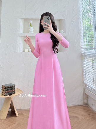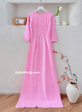 KIRA Plain Pink ao dai with pearls| áo dài| Pre made ao ai for bridesmaids| Plain| Wedding day checklist| No pants| S-6XL