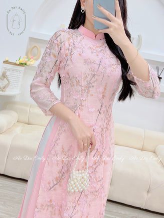 MERLYN Ao Dai Vải tơ hoa đào 3D| Pink | Pre made ao dai Viet Nam| Vietnamese long dress| | Ao dai Women| No pants|