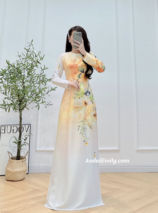 RENATA Printed flowers pattern Pre made ao dai for women| Vietnamese long dress| No pants|S-6XL