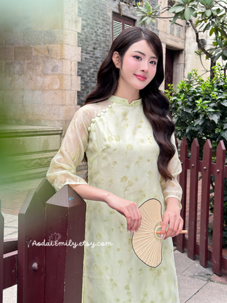 AVERY Double layers modern ao dai with Spring patterns| áo dài cách tân | No pants| Ao dai women