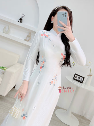 AKIRA Pastel embroidery ao dai | Vietnamese long dress| traditional Women dress |White áo dài |No pants| S-4XL