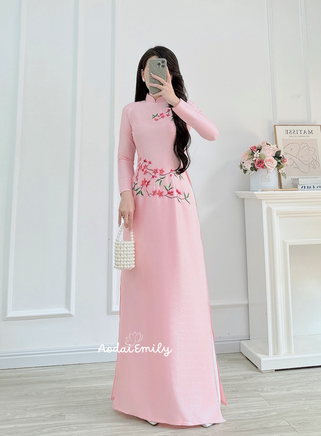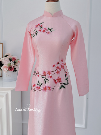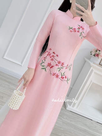 JULIET Pink Pre made embroidery ao dai| Ao dai vietnam| Vietnam long dress| Ao dai for special events |No pants