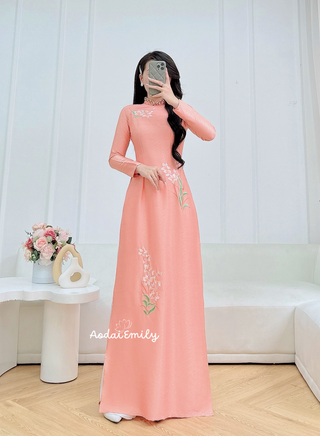 VALENTINA Pre made embroidery ao dai with hand beading crystals collar| Vietnam long dress| Ao dai for special events |No pants| S-3XL