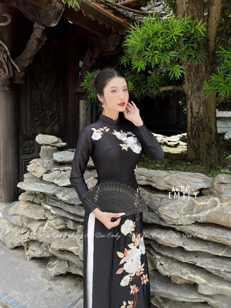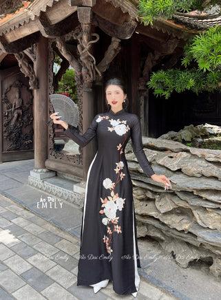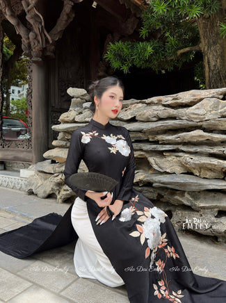 JAYLENE Aó dài lụa with embroidery Flowers | áo dài lụa thêu hoa| Pre made Vietnamese long dress| traditional dress | No pants|S-3XL