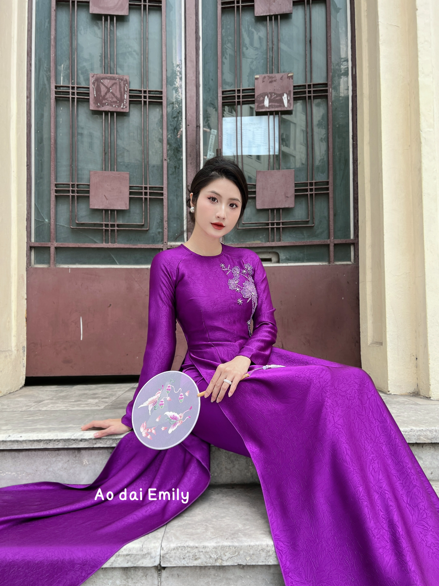 Purple ao dai set with crystal beading design | Pre made ao dai| With same color pants| S-5XL| Cornflower