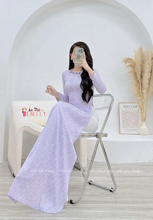BETH Pastel purple áo dài| with crystals and pearls | Pre made ao dai Viet Nam| Vietnamese long dress| Ao dai for women| No pants|