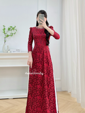CYPRESS Ao Dai Gấm set with pearls collar | áo dài gấm | Vietnamese long dress| traditional Women dress | No pants| S-3XL