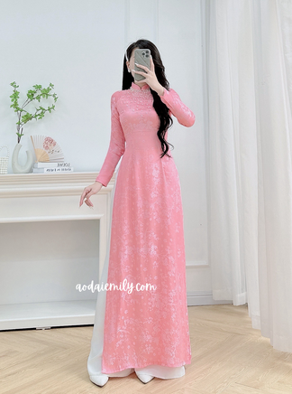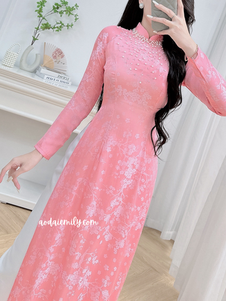 JOSIE Ao dài gấm with beading collar | Pre made ao dai Vietnam| Women long dress| No pants| Uniform ao dai| S-3XL