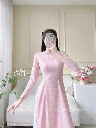 CLEO Ao dài lụa gấm with crystals| Pre made ao dai Vietnam| Women long dress|Traditional ao dai Vietnam| No pants| S-5XL