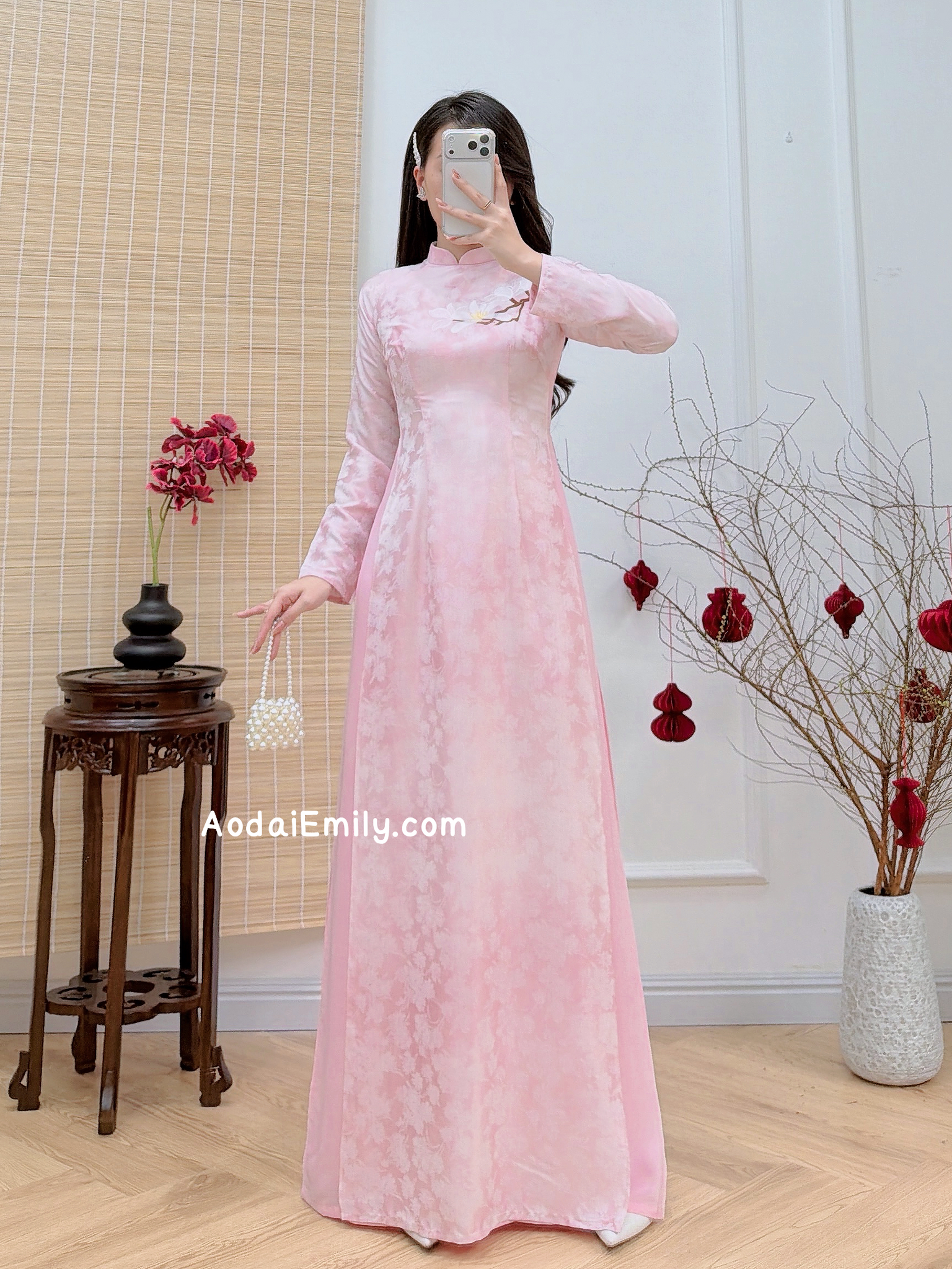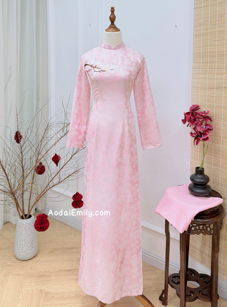 Cotton candy Pink Ao Dai Gấm set with embroidery | áo dài gấm | Vietnamese long dress| traditional Women dress | with pants| S-6xl