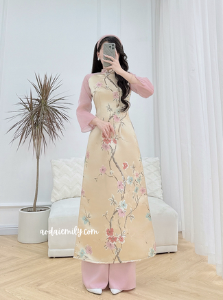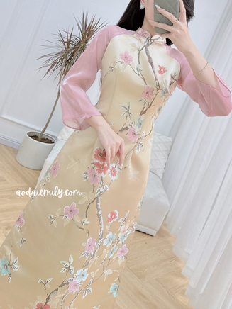 KAILANY Taffeta Modern ao dai with spring patterns| áo dài cách tân | Pre made Ao dai women| With pants| S-6XL