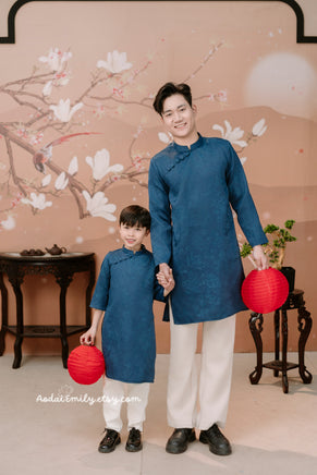 JAMIE Dark Blue Embroidery Matching Dad and baby Boy| Pre-made Ao Dai for Lunar New Year | Ao Dai Gia Dinh Tet|