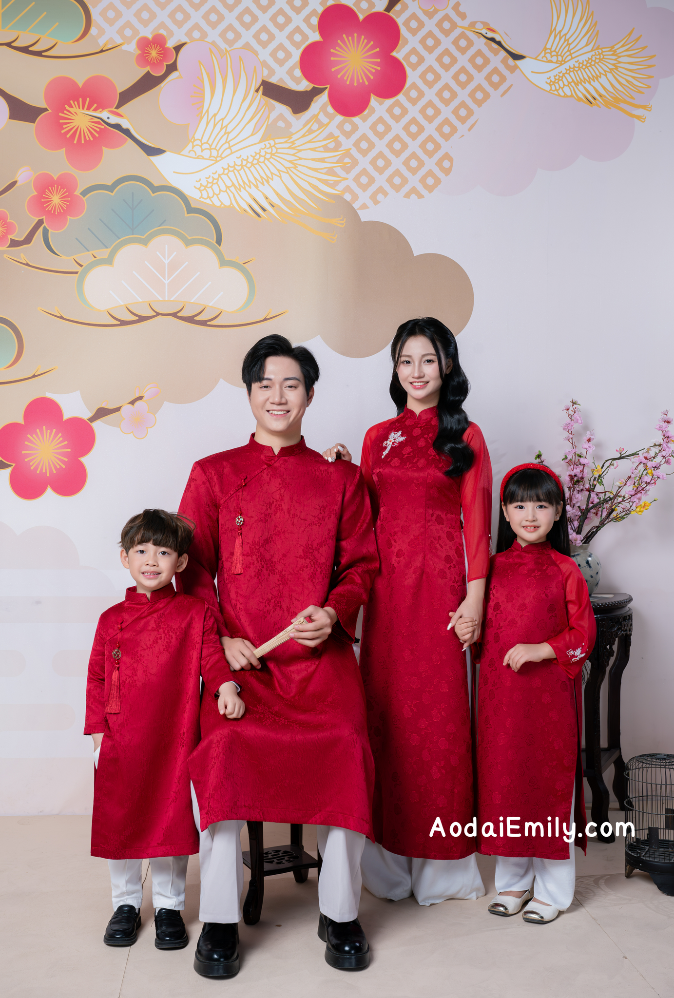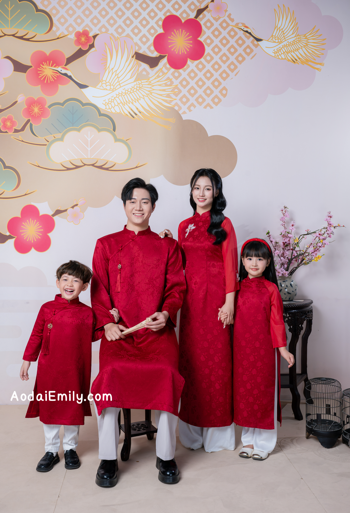 JOHANNA Red Matching Family Ao dai with simple beading crystals