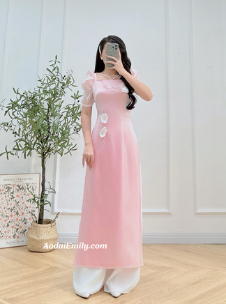 KYLA Pink Matching Mom & Girl Ao Dai with 3D flowers| Ao Dai Lunar New Year 2026| With pants|