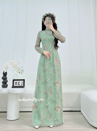 MIRIAM Dark Green Mini Flowers Double layers Ao Dai | Pre-made Traditional Vietnamese Ao Dai| No pants and No headpieces| S-6XL