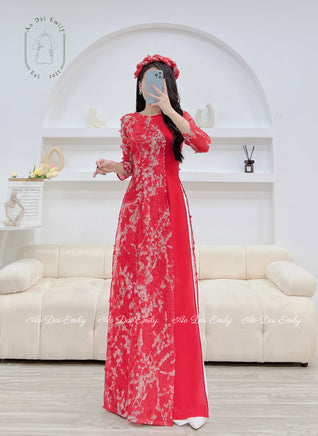 SEVYN Ao Dai Vải tơ xước hoa đào 3D| Red | Pre made ao dai Viet Nam| Vietnamese long dress| Ao dai Women| No pants| No headpiece| S-3XL