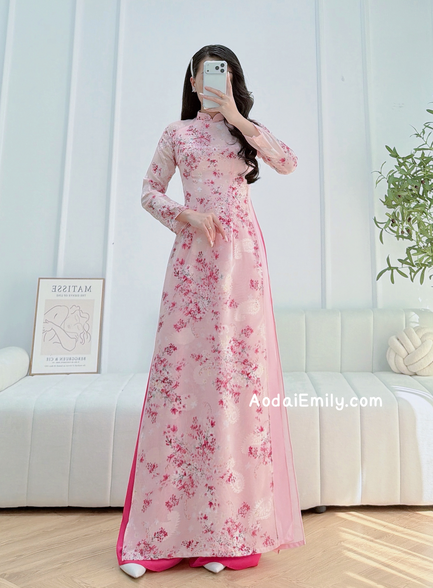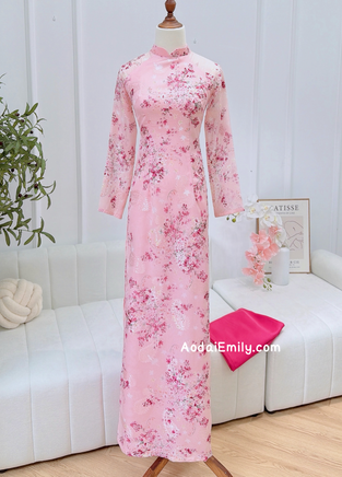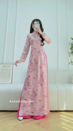 Mini cherry blossom flowers ao dai set| Ao dai for summer| With Pants | Double layers silk ao dai| S-6XL|MFF001