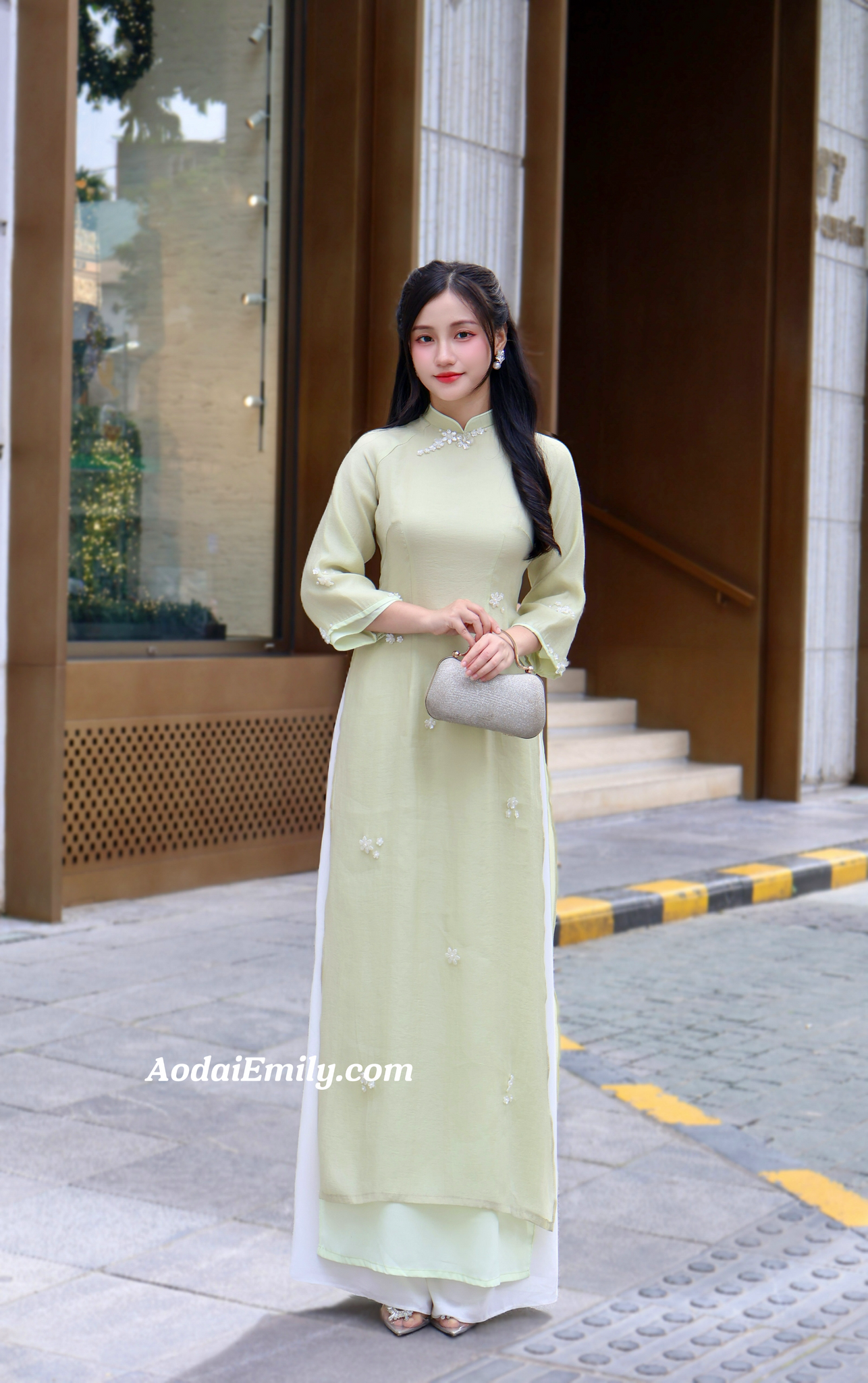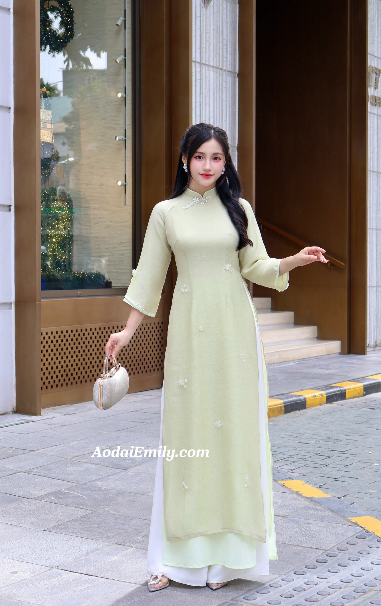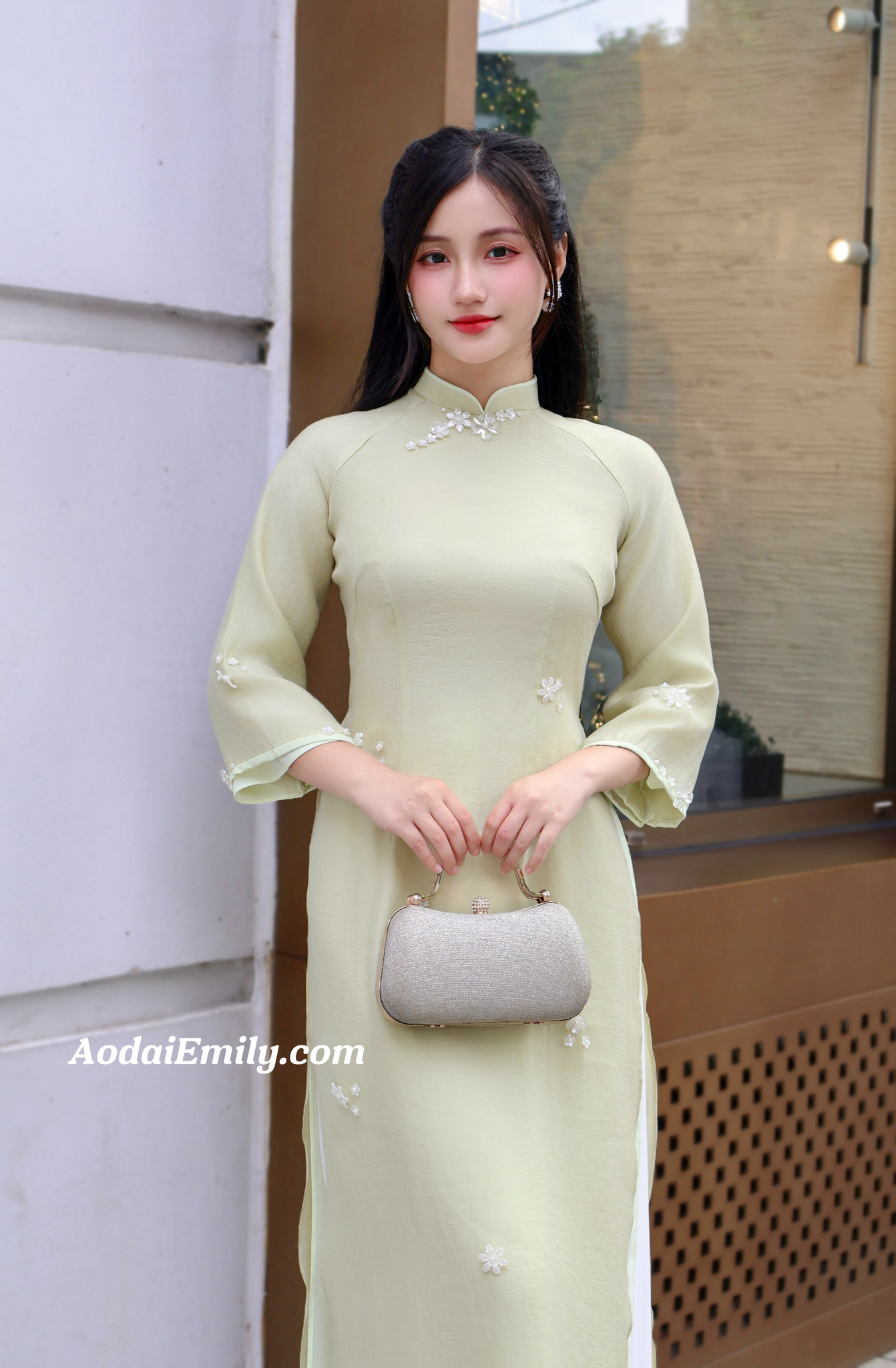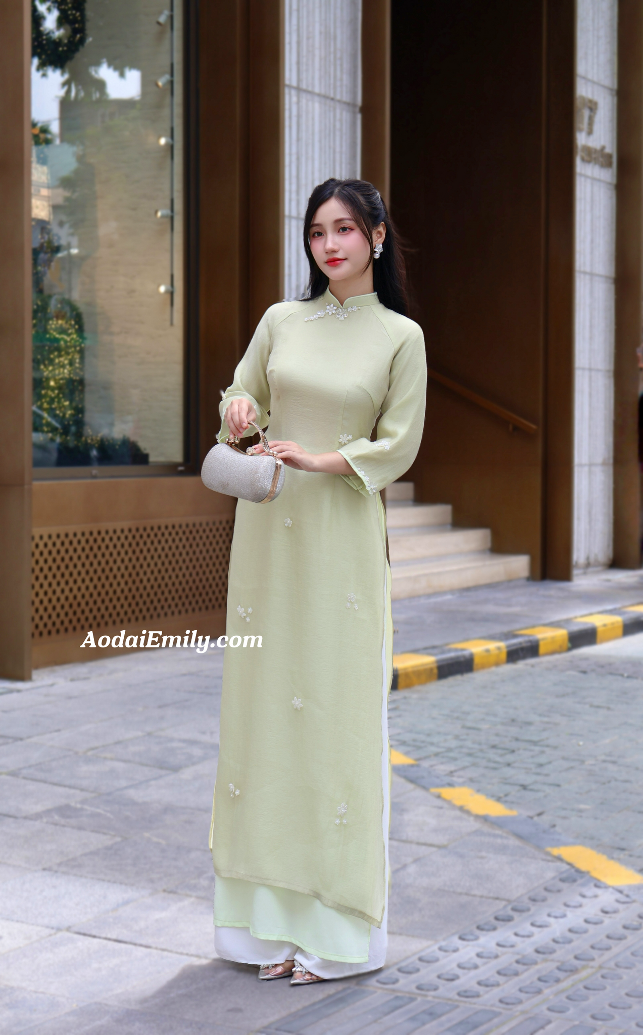 EMORY Double layers modern ao dai with 3D crystals flowers| áo dài cách tân| No pants| Ao dai women| S-8XL
