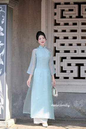 KYLEIGH Double layers modern ao dai with hand beaded flowers | áo dài cách tân| Ao dai women| No pants| S-9XL