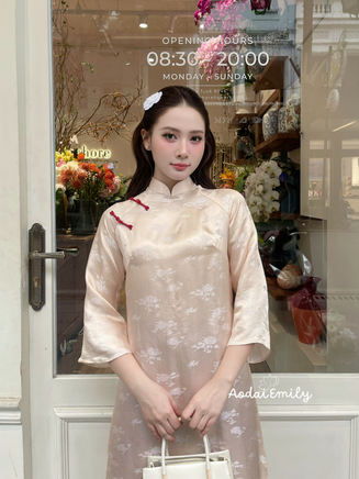 ALICE Mulberry silk ao dai with happy daisy patterns| Luxury ao dai| Ao dai for special events| Pre made Vietnamese long dress| No pants