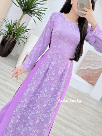 MACKENZIE Purple Ao Dai Gấm set | áo dài gấm | Vietnamese long dress| traditional Women dress | áo dài with pants