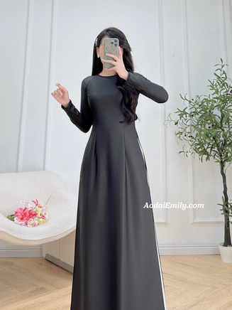 ARYA Black ao dai with simple beading crystals | Round collar Pre made ao dai| Vietnamese long dress| | No pants| S-6XL
