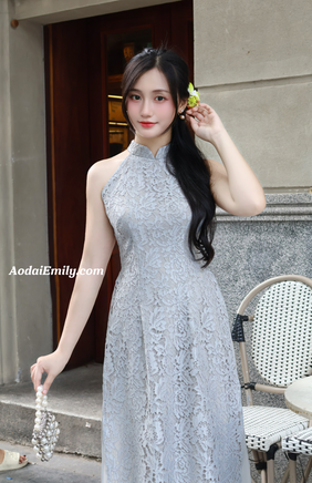 HALLE Sleeveless Gray Lace ao dai | Pre made ao dai| | Ao dai yếm | No pants|S-2XL