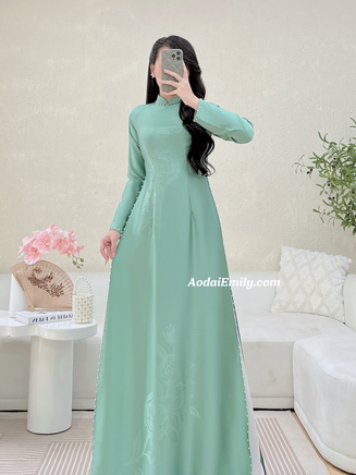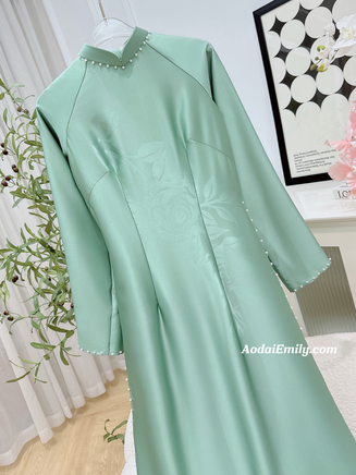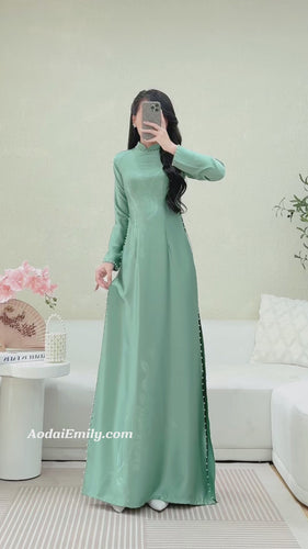 NAYELI Traditional Ao dai with simple pearls collar| áo dài Vietnam| Ao dai women| uniform ao dai| No pants| 4D silk|S-6XL