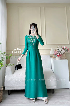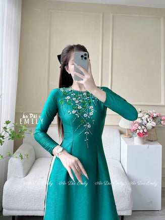 VICTORIA Dark green ao dai with crystals| Pre made ao dai Vietnam| No pants|