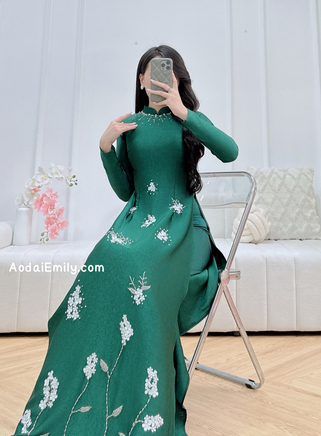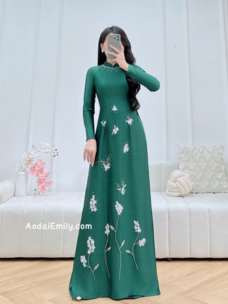 APRIL Dark Green Hand beading 3D flowers with crystals| Pre made long dress| With same color pants| S-3XL