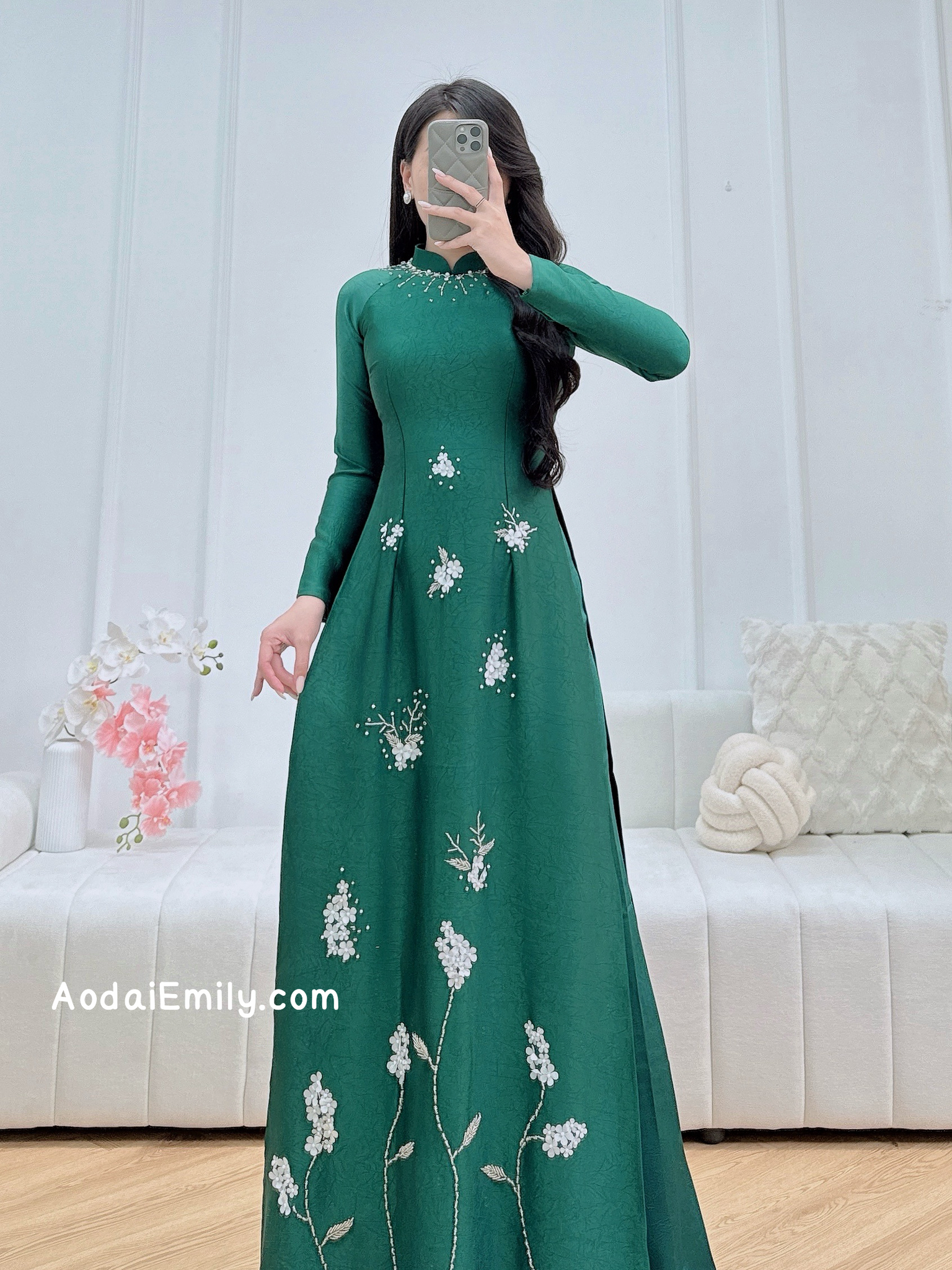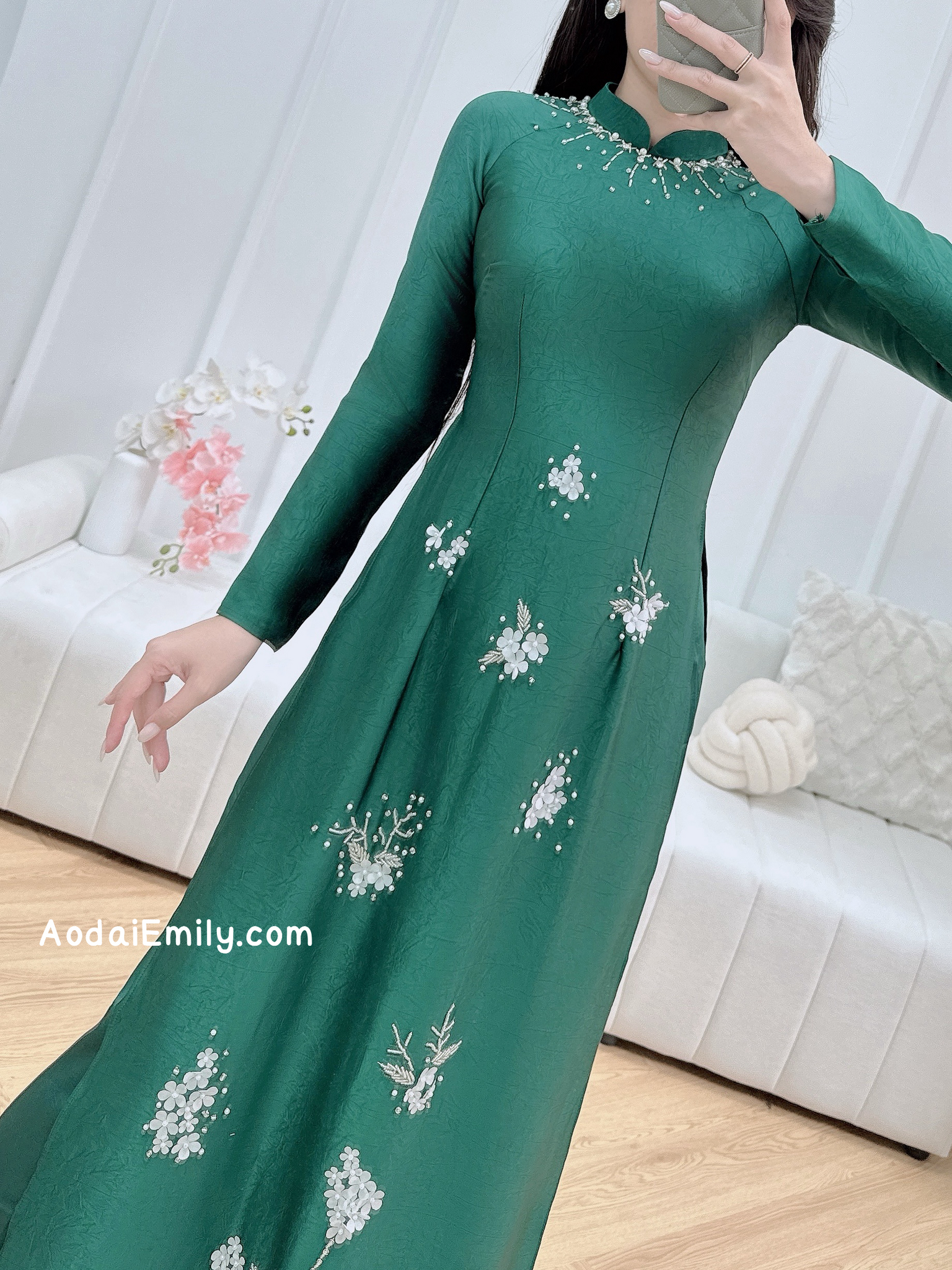 This includes: 1 ao dai top and 1 pants (same color and material with the top)