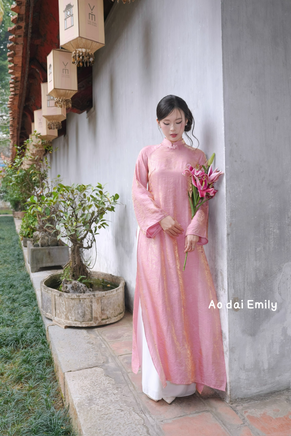 Pink/ Gold Loosing modern ao dai with button collar | áo dài cách tân| Ao dai Viet Nam| | Pre made Ao dai | No pants| S-6XL| LSP002
