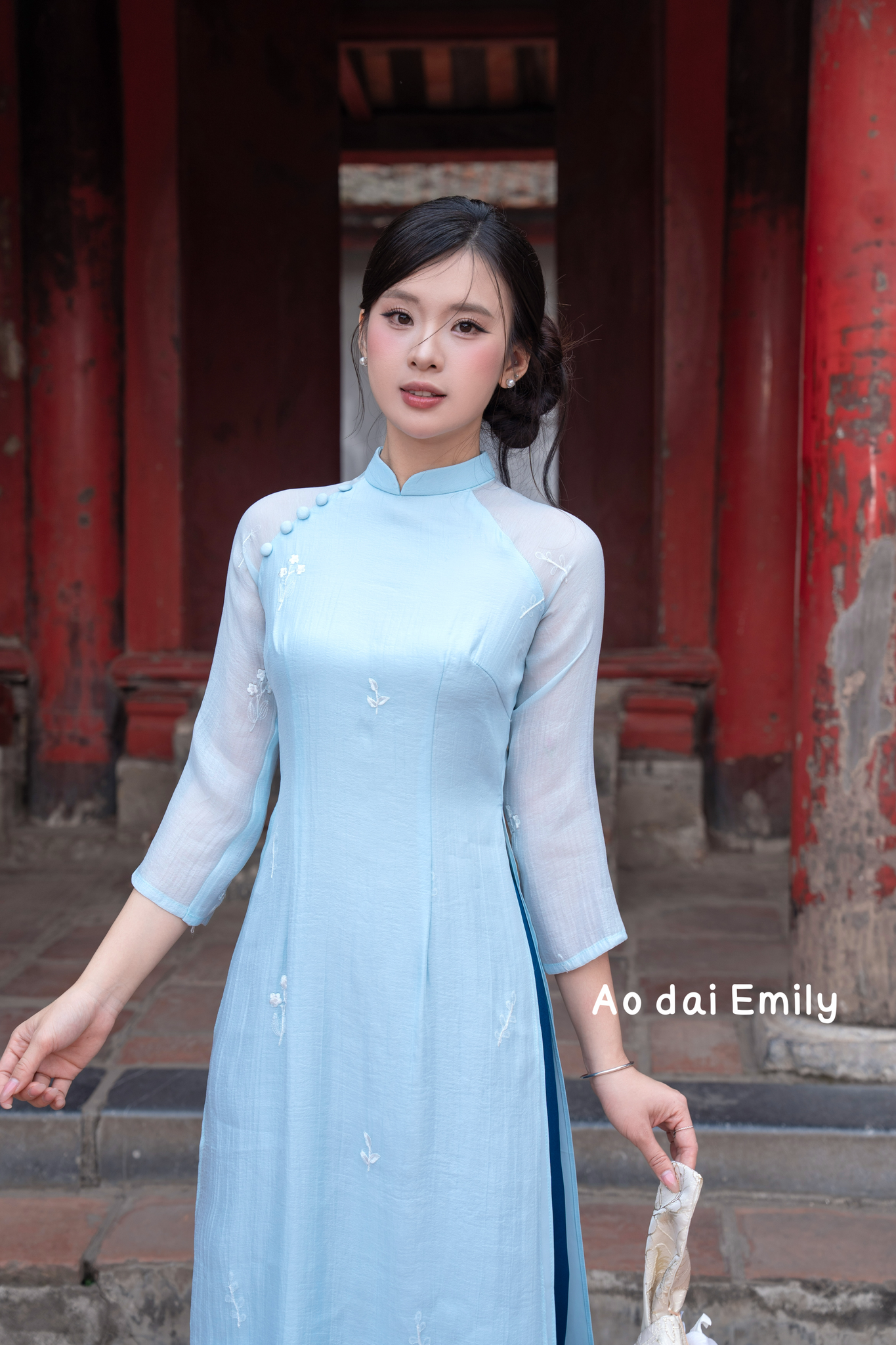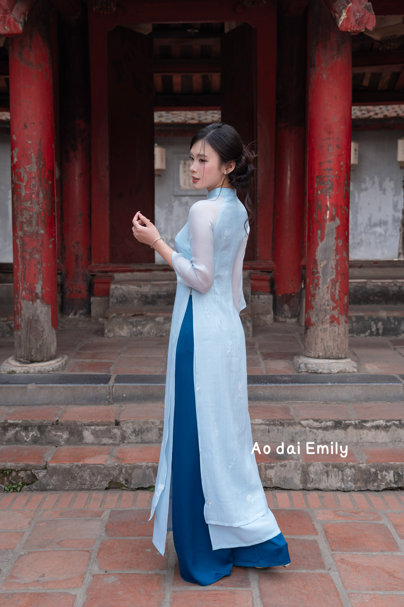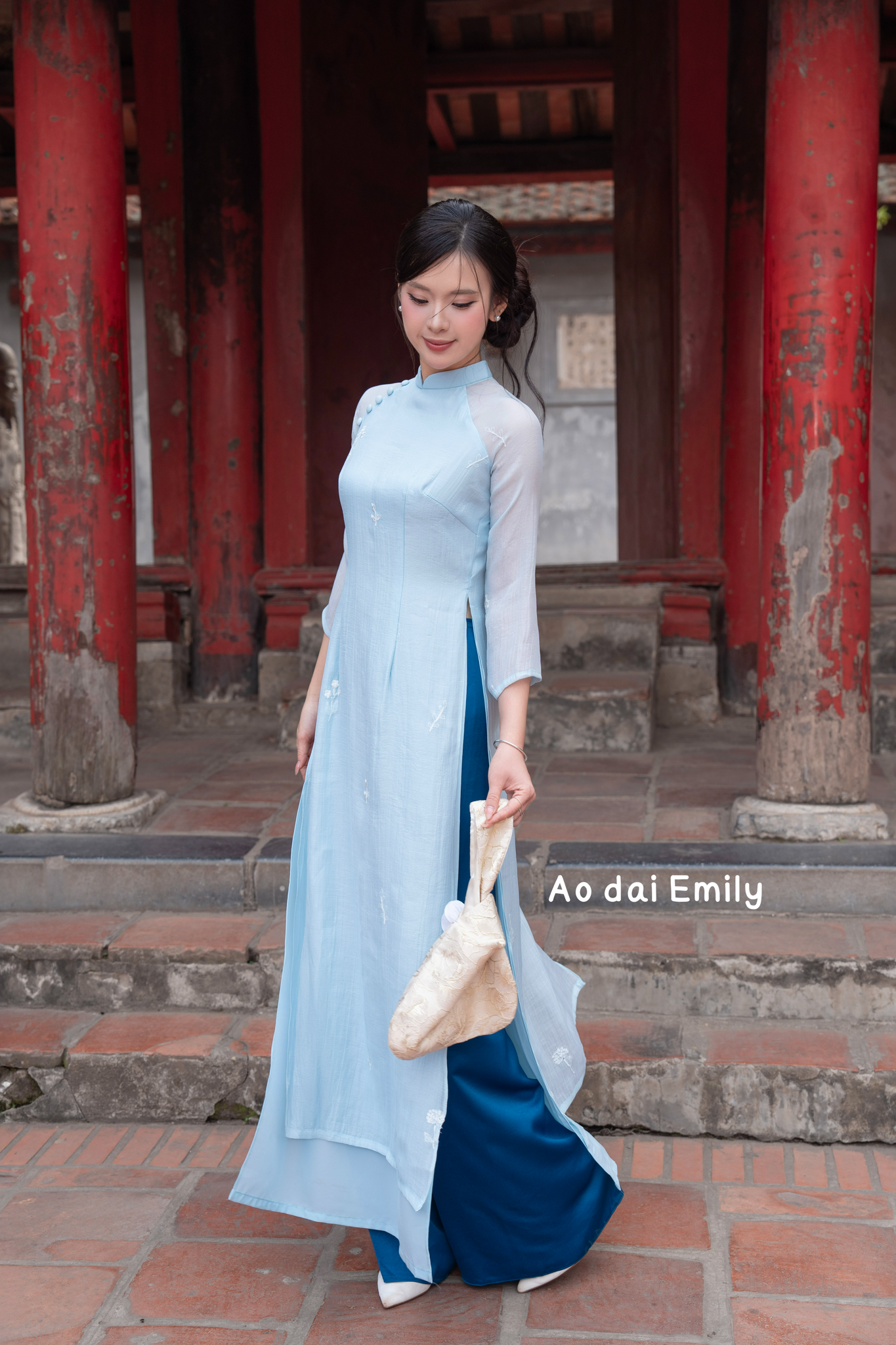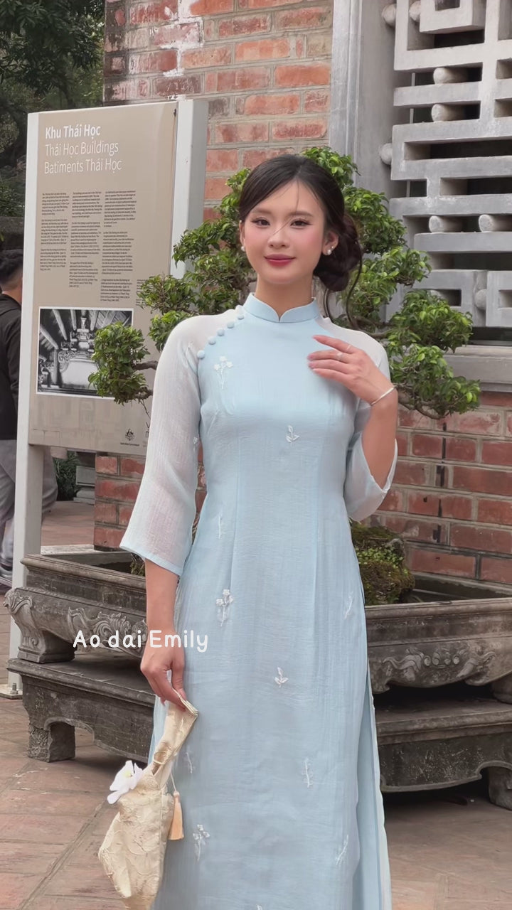CALLA LILY Baby blue embroidery flowers Modern ao dai| With pants| Ao dai Cach tan| Ao dai Vietnam| Lunar New year| Trendy Ao dai| S-6XL