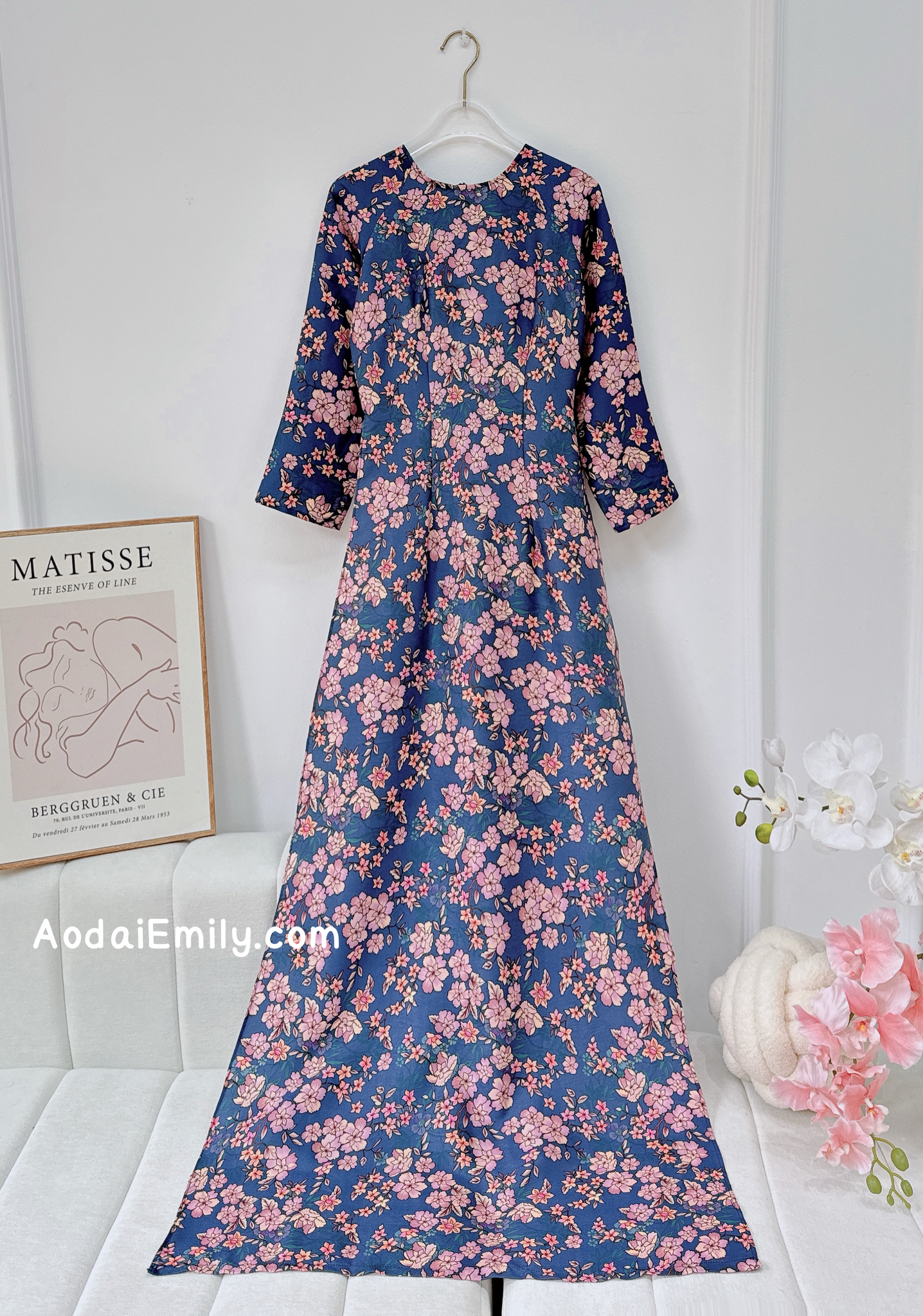 DALLAS Printed Sakura flowers patterns| Pre made ao dai for women| Vietnamese long dress| Ao dai tet |No pants|S-6XL