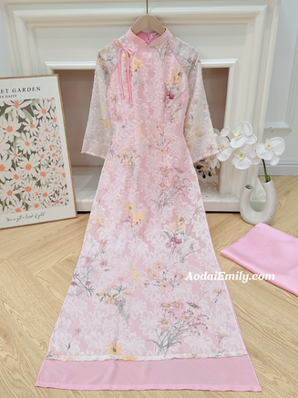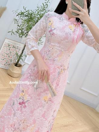 DANIELLE Pink Spring flowers pattern Modern Ao dai