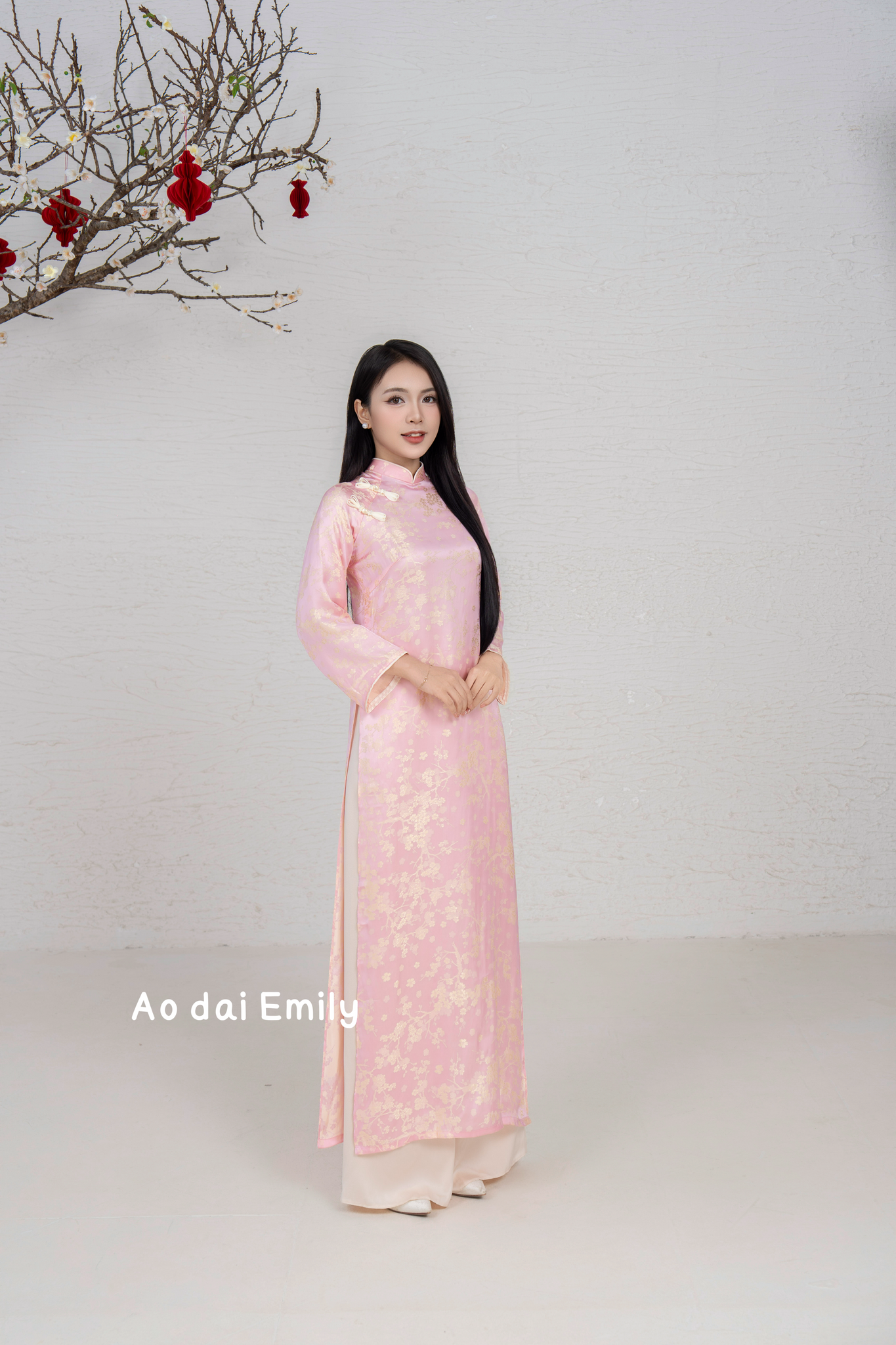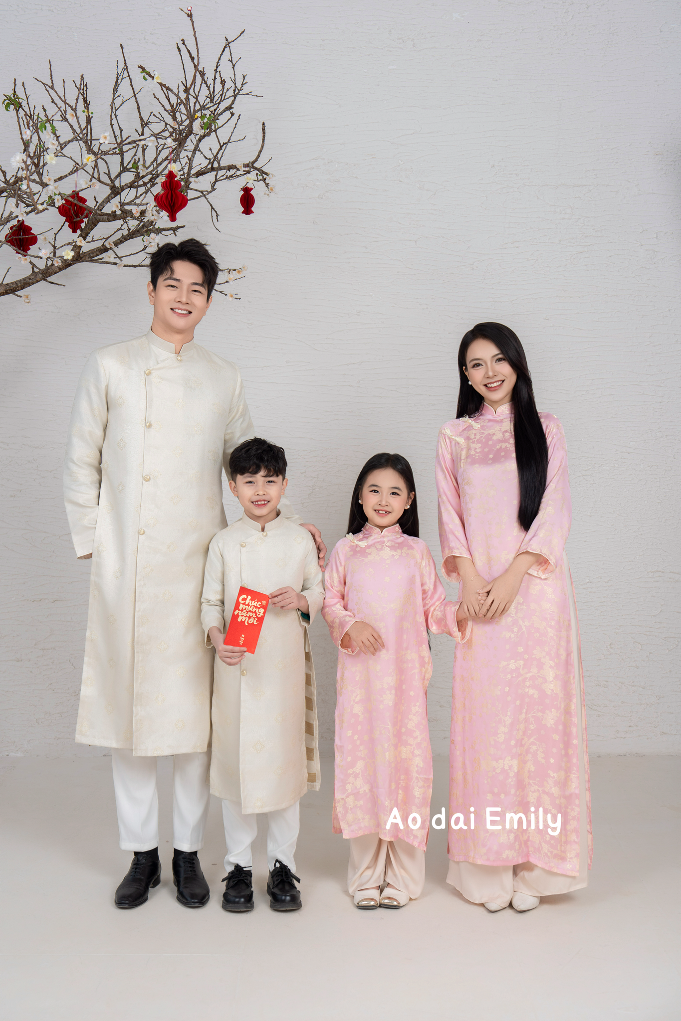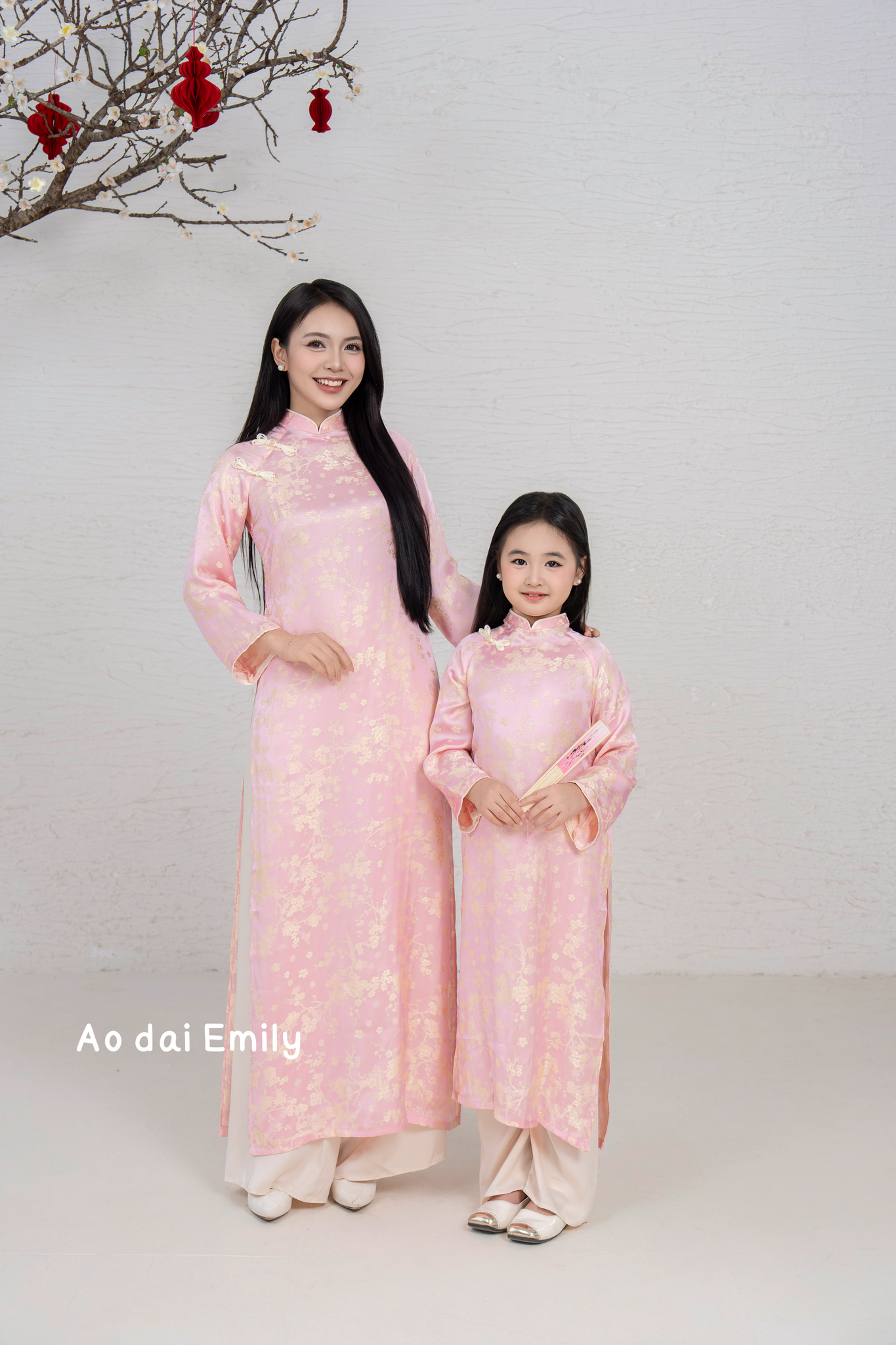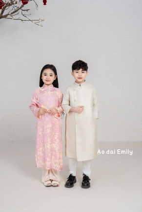 Pink/Cream Matching Family Spring Ao Dai Set| Pre-made Ao Dai for Lunar New Year | Ao Dai Gia Dinh Tet| Ao dai for Family