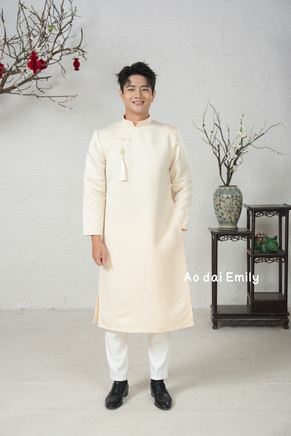 Plain Cream Ao dai for men| Taffeta ao dai | Ao dai for men| Slim fit| Ao dai for Groomsman| add 2-3 size to your T shirt size|M-6XL| MNC001